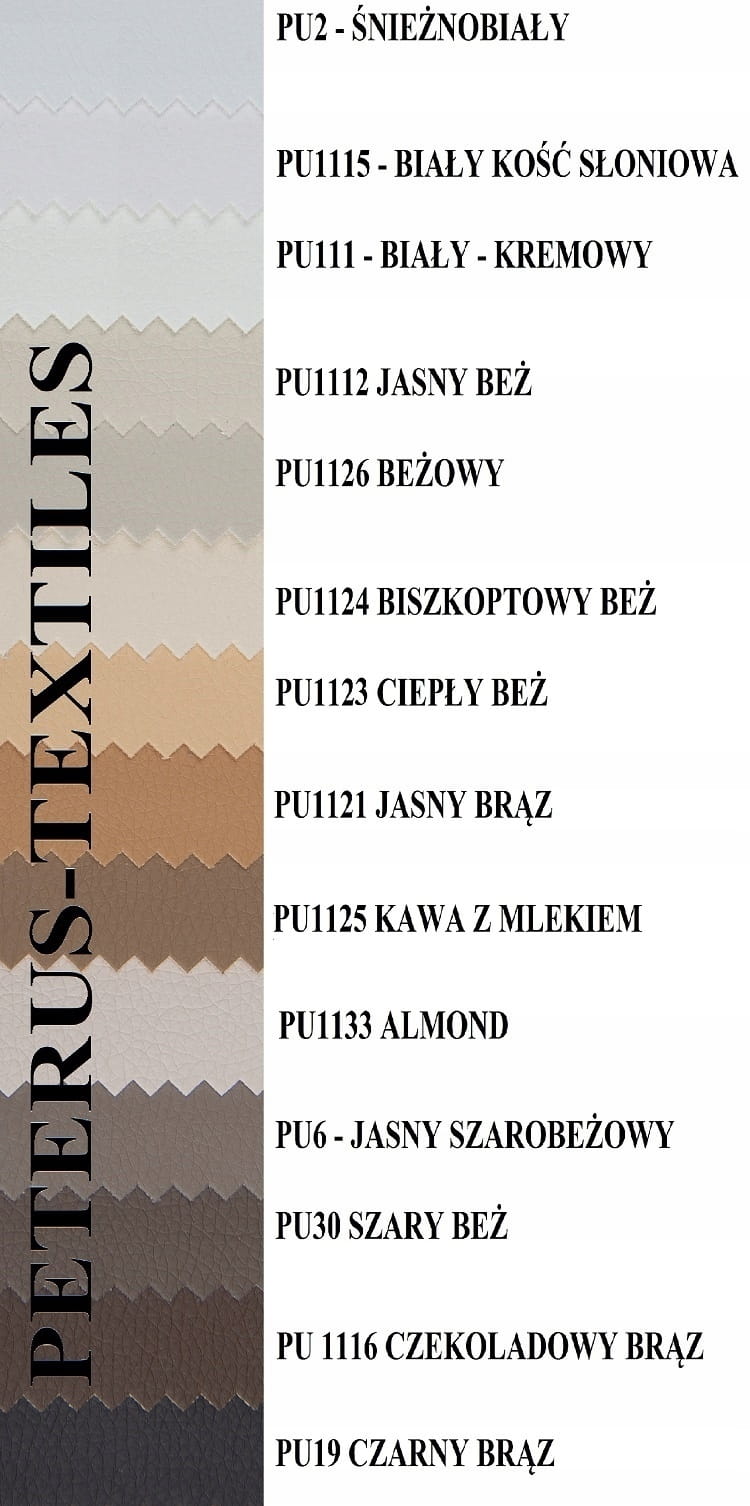 Przedmiotem sprzedaży jest 1 metr bieżący - Tkanina jest cięta z wałka o szerokości 140 cm. Przykładowo zamawiając 10 metrów bieżących(10 szt.) kupują Państwo kawałek materiału w jednym kawałku o wymiarach 10 metrów x 140 cm. Tkanina ma zwiększoną odporność na ścieranie i jest nieprzemakalna. Jednakże jest również miękki, elastyczny i plastyczny posiadamy wszystkie kolory widoczne na zdjęciach: