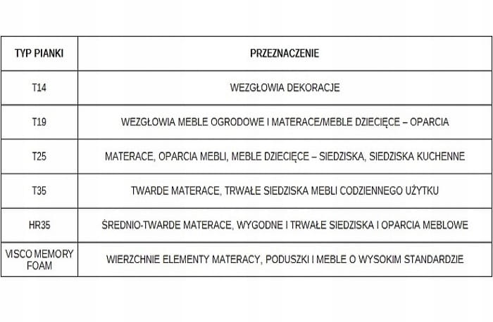 PRZEDMIOTEM SPRZEDAŻY JEST NOWA NAJWYŻSZEJ JAKOŚCI PIANKA POLIURETANOWA STOSOWANA W PRZEMYŚLE MEBLOWYM I TAPICERSTWIE