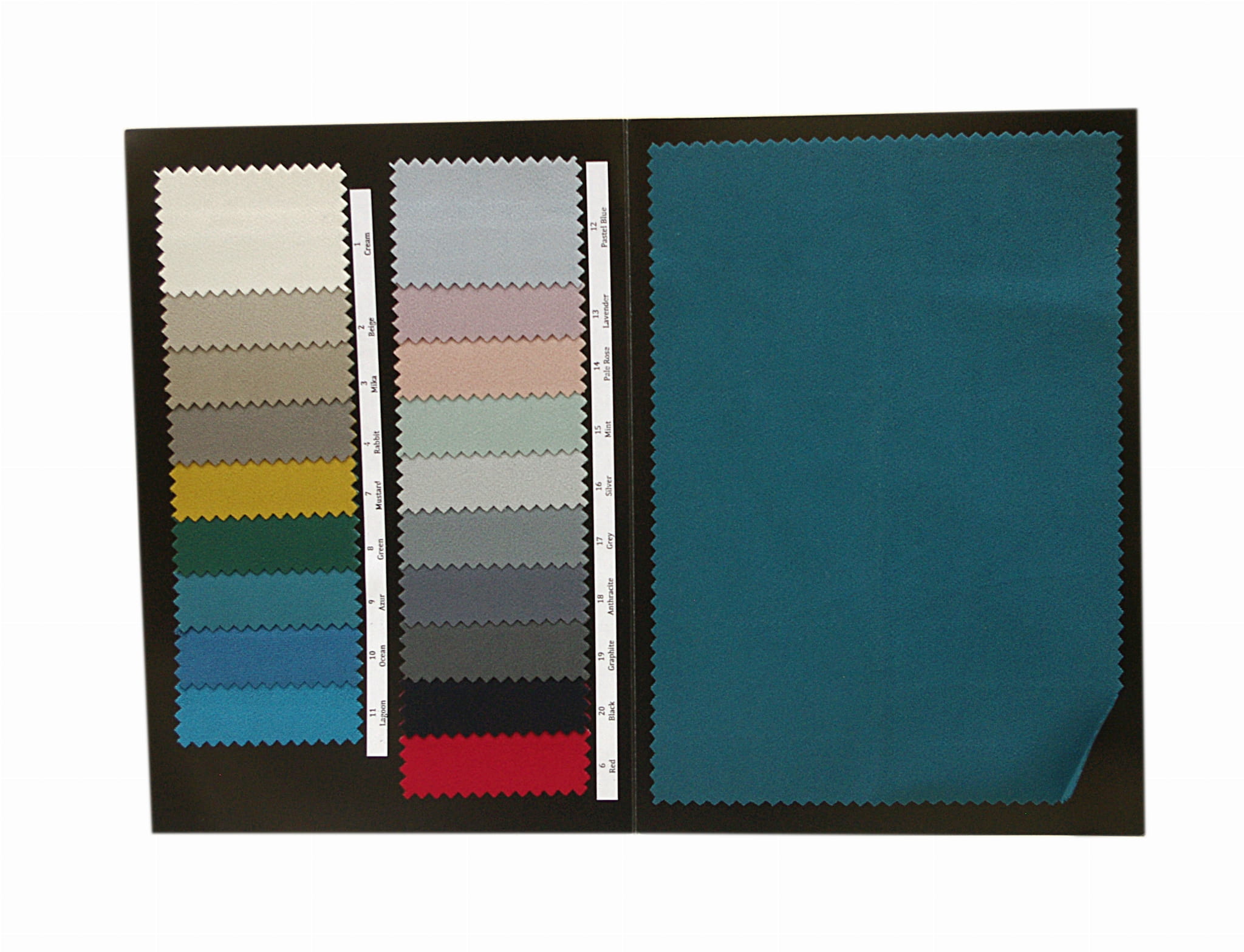 w formie katalogu 2xA4 zawiera 19 podpisanych próbek tkaniny